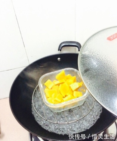 第一步,我们需要准备新鲜的南瓜,去皮,清洗干净,切好,直接放在蒸锅上开始蒸。一般蒸十分钟就可以直接蒸了。南瓜成熟后取出,用勺子压成南瓜泥。