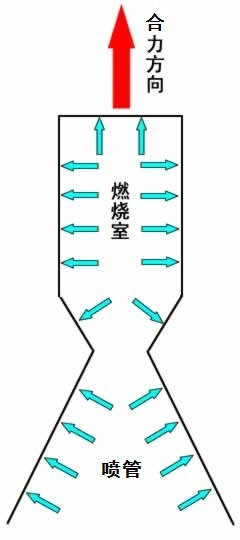 (图解:火箭的推力是压力作用在燃烧室和喷管,由于反作用力产生的结果。图源:wikipedia)